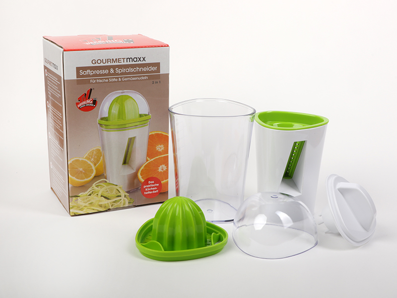 Ožemalnik citusov in spiralni rezalnik za zelenjavo je vsestranski kuhinjski pripomoček za vsakodnevno rabo. Nov izdelek, ki ne sme manjkati v nobenem slovenskem gospodinjstvu.